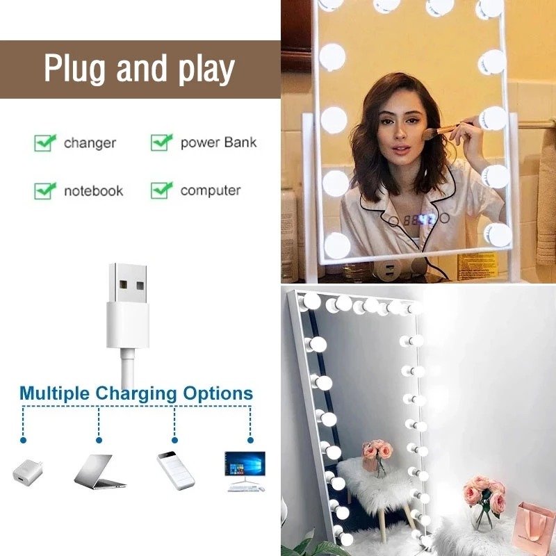 USB LED Makeup Mirror Lights – 10 Bulb Vanity Mirror Light